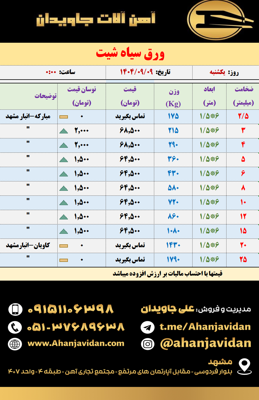 آهن آلات جاویدان آهن جاویدان قیمت تسمه عرض 20 سانت قیمت تیر آهن مشهد قیمت سپری قیمت میلگرد آجدار قیمت میلگرد ساده قیمت ناودانی قیمت نیشی قیمت وال پست قیمت ورق سیاه رول قیمت ورق سیاه شیت قیمت ورق سیاه شیت عرض کوتاه قیمت پروفیل ورق روغنی